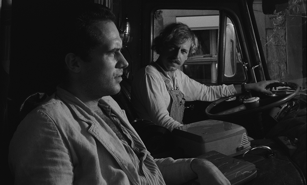 KINGS OF THE ROAD is about a friendship between two men: Bruno, aka “King of the Road” (Rüdiger Vogler), who repairs film projectors and travels along the inner-German border in his truck, and the psychologist Robert, aka “Kamikaze” (Hanns Zischler), who is fleeing from his own past. When Robert drives his old VW straight into the Elbe river, he is fished out by Bruno. This is the beginning of their shared journey through a German no–man’s–land, a journey that leads them from the Lüneburg Heath to the Bavarian Forest.